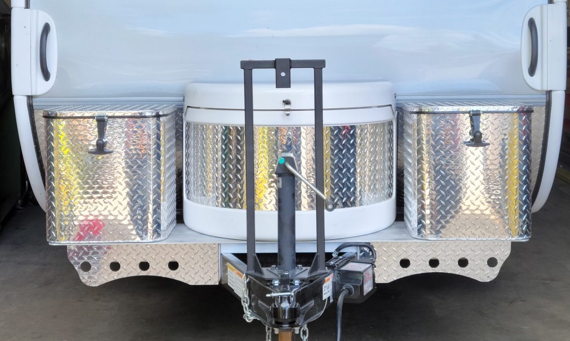 Perfect compliment to your new aluminum side boxes - ties in your center box to complete the look!! Measures 42.13" Wide x 11.5" High. Made out of aluminum diamond plate. Installs easily.