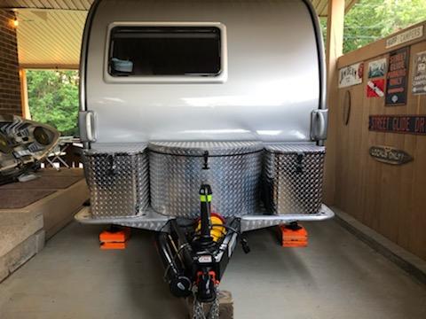 Beautifully crafted aluminum storage boxes for nuCamp and teardrop RV campers. TAG X-Large Boxes measures – 15 ½” w x 18” deep x 12 ¾” front to back. $600/set of 2.